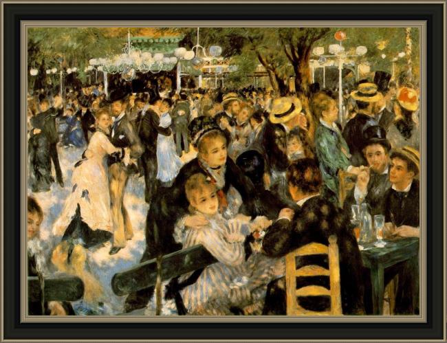 Framed Pierre Auguste Renoir la moulin de la galette painting
