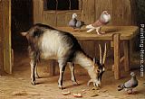 A Goat and Pigeons In a Farmyard by Edgar Hunt
