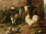 A Goat Chicken and Doves in a Stable by Edgar Hunt