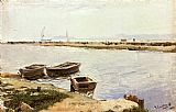 Three Boats By A Shore by Joaquin Sorolla y Bastida