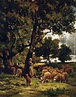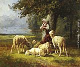 Shepherdess Resting With Her Flock by Charles Emile Jacque