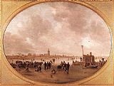 A Winter Landscape With Figures On A Frozen Waterway by Jan Jacob Coenraad Spohler