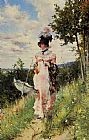 A summer landscape with figures on a riverbank by Charles Henri Joseph Leickert