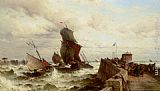 Ships Entering a Port in a Storm by Theodor Alexander Weber