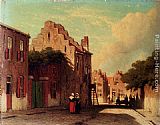A Sunlit Townview With Figures Conversing by Jan Hendrik Weissenbruch