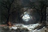 A Moonlit Winter Landscape by Remigius Adriannus van Haanen