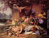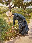 A Young Lady Holding A Basket Of Flowers by Giovanni Costa