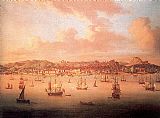 River Landscape With Figures Loading A Boat by Henry John Boddington
