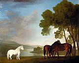 Two Bay Mares And A Grey Pony In A Landscape by George Stubbs