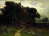 landscape, woodcutter on path by Edward Mitchell Bannister