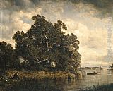A Summer Landscape With A Ferry by Andreas Schelfhout