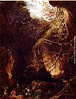 Figures By A Waterfall In A Wooded Landscape by Hubert Robert