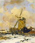 A Windmill in a Winter Landscape by Jacob Henricus Maris
