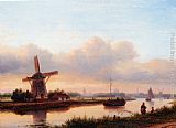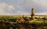 A Windmill in an Extensive Landscape by Pieter Lodewijk Francisco Kluyver