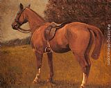 A Saddled Hunter in a Landscape by Sir Alfred James Munnings