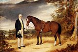 A Gentleman Holding a Chestnut Hunter in a Wooded Landscape by William Webb