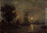 Holandaise Landscape with Docked Boat by Johan Barthold Jongkind