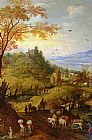 A Rocky Landscape with Cattle on a Road by Joos De Momper