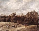 A Rhenish River Landscape With Fishermen In A Boat And Washerwomen On A Bank by Johannes Hilverdink