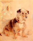Terrier Seated Before A Canton Famille Rose Vase by William Huggins