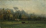 landscape with man plowing fields by Edward Mitchell Bannister