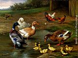 Chickens, Ducks and Ducklings Paddling by Edgar Hunt