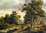 Peasant Woman and a Boy in a Wooded Landscape by Hendrik Barend Koekkoek