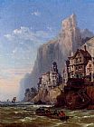 Rowing Out At A Coastal Town by Charles Euphrasie Kuwasseg