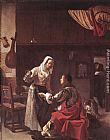 An Extensive Coastal Landscape with Fishermen Unloading their Boats and Figures Conversing in the Foreground by Claude-Joseph Vernet