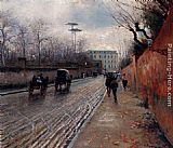 A Parisian Street Scene with Sacre Coeur in the distance by Luigi Loir