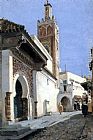 A Street Scene with a Mosque, Tangier by Manuel Garcia y Rodriguez