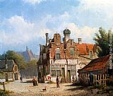 A Wintry Scene with Figures near a Boat on the Ice by Andreas Schelfhout