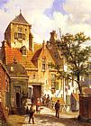 A Town Scene on a Canal by Bartholomeus Johannes Van Hove