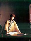 A Still Life with Honeysuckle, Blue Cornflowers and Bluebells on a Marble Ledge by Johan Laurentz Jensen