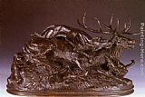 Cerf Abbatu Par Deux Chiens D'Ecosse by Antoine Louis Barye
