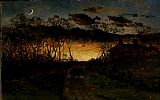 sunset with quarter moon and farmhouse by Edward Mitchell Bannister