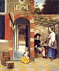 Figures Drinking in a Courtyard by Pieter de Hooch