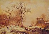 Figures On A Frozen Lake by Charles Henri Joseph Leickert
