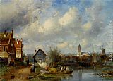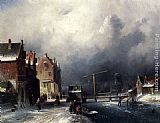 Figures on a Barge Near a Winterside Village by Charles Henri Joseph Leickert