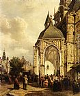 Figures At The Entrance Of The St. Stevens Church, Nijmegen by Elias Pieter van Bommel
