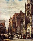 Many Figures On The Market Square In Front Of The Martinikirche, Braunschweig by Cornelis Springer