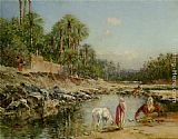 Figures Standing by a Caravan by Victor Pierre Huguet