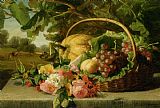 A still life with flowers grapes and a melon by Geraldine Jacoba Van De Sande Bakhuyzen
