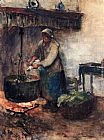 A Cottage Interior With A Peasant Woman Preparing Supper by Albert Neuhuys