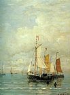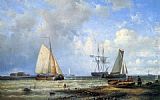 Fishing Vessels by the Shore by Louis Verboeckhoven
