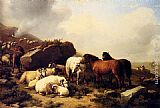 Horses And Sheep By The Coast by Eugene Verboeckhoven