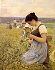 A Young Beauty holding a Bouquet of Flowers by Fritz Zuber-Buhler