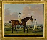Portrait of Henry Comptons Race Horse Cottager Held by a Groom with Jockey and a Race Beyond by Francis Sartorius