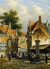 Figures on a Market Square in a Dutch Town by Cornelis Springer