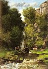 A Family of Deer in a Landscape with a Waterfall by Gustave Courbet